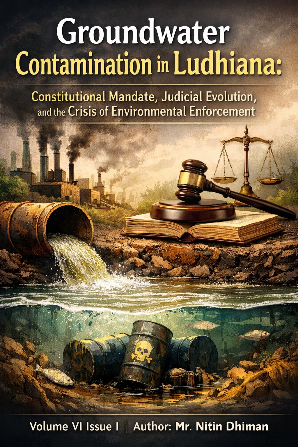 Groundwater contamination in Ludhiana, Punjab, presents a serious constitutional, environmental, and governance challenge arising from rapid industrialization, untreated effluent discharge, and infrastructural inadequacies. Despite a comprehensive statutory framework under the Water (Prevention and Control of Pollution) Act, 1974 and the Environment (Protection) Act, 1986, groundwater degradation continues to threaten public health and ecological sustainability. This paper undertakes a doctrinal examination of constitutional provisions, statutory architecture, judicial development of environmental jurisprudence, and the role of the National Green Tribunal (NGT) in addressing groundwater contamination. It argues that Article 21 of the Constitution firmly embeds access to clean and safe water within the right to life, thereby imposing a positive obligation upon the State. While judicial innovation and tribunal activism have strengthened environmental accountability through principles such as sustainable development, precautionary principle, and polluter pays doctrine, enforcement deficiencies and institutional fragmentation undermine effective implementation in Ludhiana. The study concludes that the crisis is not legislative inadequacy but governance failure. Strengthening regulatory institutions, technological monitoring, transparency mechanisms, and coordinated enforcement is essential to align groundwater governance with constitutional mandates.