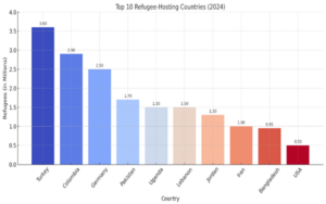 Here’s the vertical bar graph showing the Top 10 Refugee-Hosting Countries (2024):